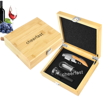 إكسسوارات نبيذ من الفولاذ المقاوم للصدأ بسعر الجملة ومجموعة أدوات النبيذ من خشب الخيزران 3 هدية وفتحت النبيذ